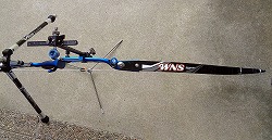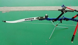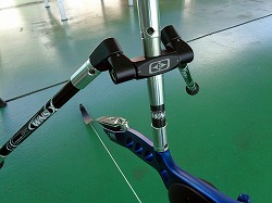 ![]() EASTON社アジャスタブルVバーは、左右幅と上下の角度が可変出来るという優れものです。実際に45°×45°で試しましたが、確かに下部が重く安定性は上がりましたがやはりVバー自身228gと重たいので、今ではSHIBUYA PRIMUS Vバー(47g)に変え、その減った分センタースタビライザー先端のウエイトを増やして、エイミング時の安定感とリリース後の飛び出し感を増やしています。 |