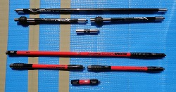 セカンドスタビライザー・サイド・エクステです。写真の上は最初のWNSのSATシリーズ(黒色)で一番安物でした。振動が取れないのでハスコで相談したら下の赤色のWINのNANOシリーズを試打させてもらい、振動は劇的に減りました。試打用だったNANOシリーズを中古として販売して貰い入手しました。色が赤なのが残念です(ハンドルは青色なので)。定価での価格差は約3倍ありNANOは高価です。長さは少し長くなり剛性も強くなり重さもやや重たくなりました。 打った感触はやはり剛性が良いのか振動が少なくなりました。知人からセンターとサイドの各ダンパーが柔らかすぎるとのでは?の指摘を受け硬い物に交換すれば少しまとまってきました。またセンターの先端にオモリを4個付けていましたが、リリース時にグニャッと折り曲がっているとのことなので、1個にしてみたらこれまたまとまりが良くなってきました。以前の安物は30ポンドのリムに着けていたのと安物だったので柔らかったみたいです。40ポンドになった今やはり剛性の高いスタビライザーが合っているとのこと。 |